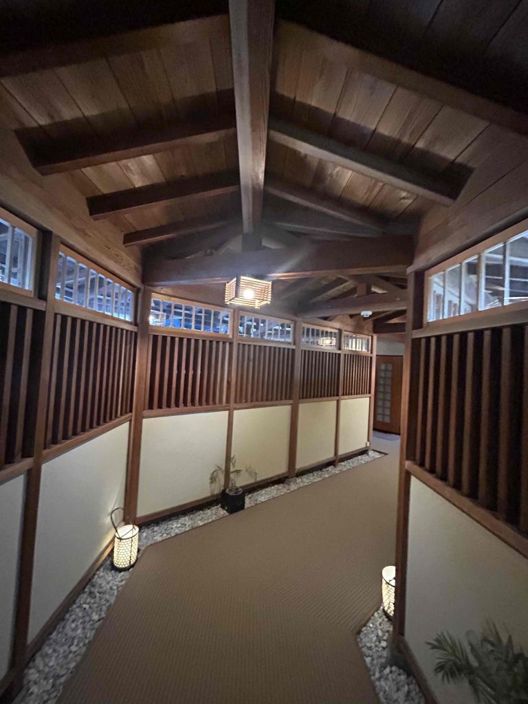 続いて客室を案内していただきました。客室まで続く渡り廊下は床暖房であったかく、雰囲気も最高♪
